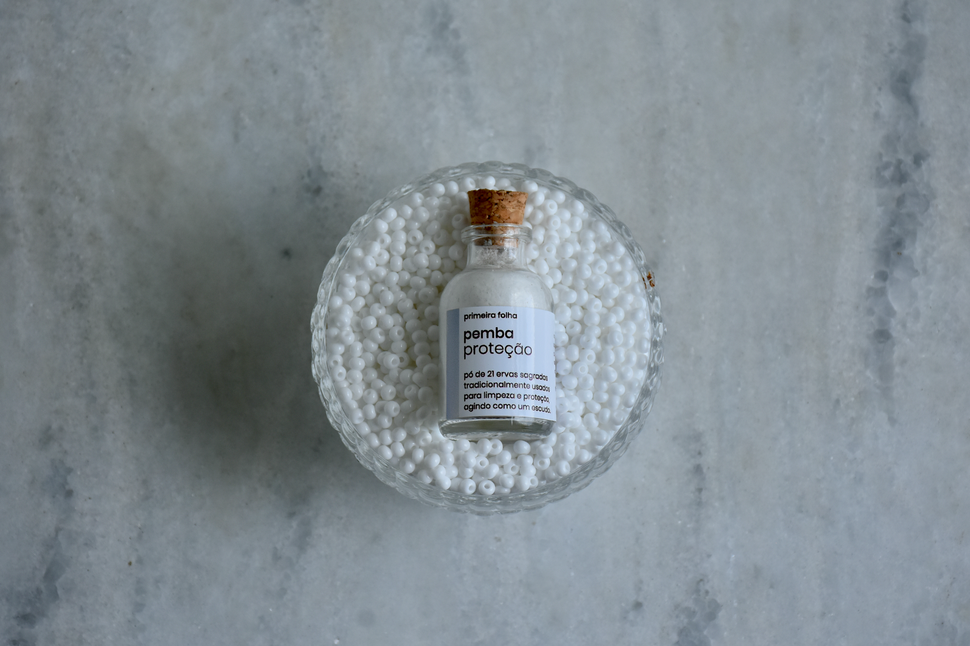 Elaborada com giz de pemba e ervas tradicionalmente associadas à proteção espiritual. Fecha o corpo, quebra demanda e fortalece. Embalagem de vidro para preservar a força do preparo. Uso recomendado: assopre levemente ou aplique nos pulsos e nuca para ativar seus efeitos.